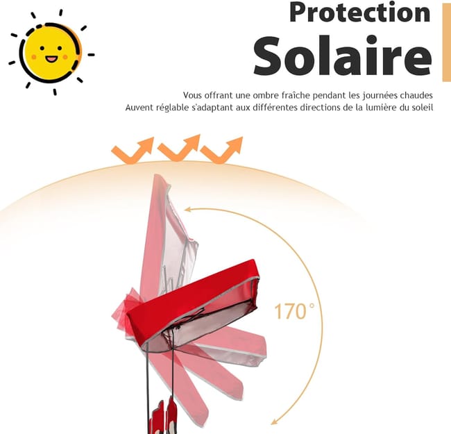 🌂 Sombrilla incorporée – Protection solaire réglable pour les jours les plus caloriques.